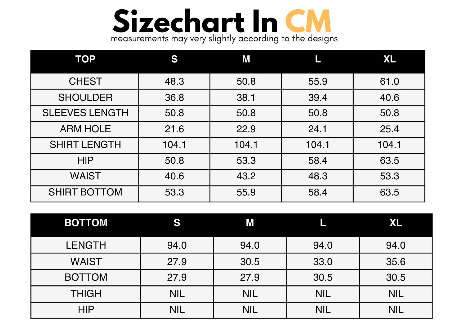 Sizechart
